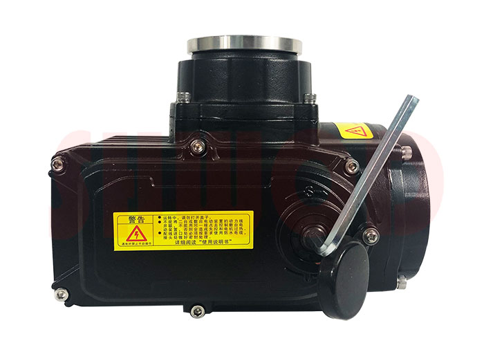 SQ系列产品的电气部分有开关型、普通调节型(加调节模块)和智能调节型三种。开关型具有现场接线方便,调试简单的特点,适合对阀门只有开和关两位控制要求的客户使用。智能型调节型具有现场、远程两种操作方式,有液晶屏显示,多种参数可供选择,有4-20mA电流或 0-10V电压的控制型号接收和开度信号反馈,功能强大。SQ全系列产品机械结构均有手动模式,方便客户安装阀门和调试机器。