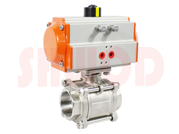 三片式球阀体积小,由三部分阀壳组成,通过四只较长螺栓从两端夹住中间阀体与气动球阀而成。其优点是维修拆卸管路螺纹,直接拆卸四只螺栓,阀门中间部分即可取出。适用于轻工机械体积小空间窄的场合。具有体积小、配套简单、流通能力大,特别适合于介质是粘稠,含颗粒,纤维性质的场合。气动丝扣球阀广泛应用于食品、环保、轻工、石油、造纸、化工、教学和科研设备、电力等行业的工业自动控制系统中。